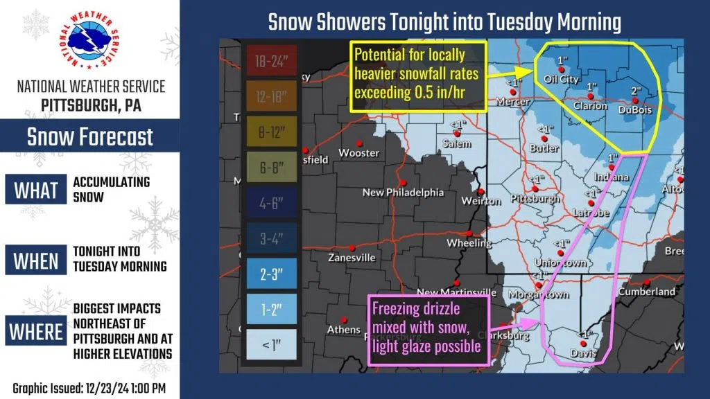 Expect mostly snow along/north of I-80, while a mix of rain, snow, & freezing rain is possible farther south. Overall accumulations are expected to remain low, but up along/north of I-80 snowfall rates could become heavy enough at times to put a quick coating on roads, making them slick.