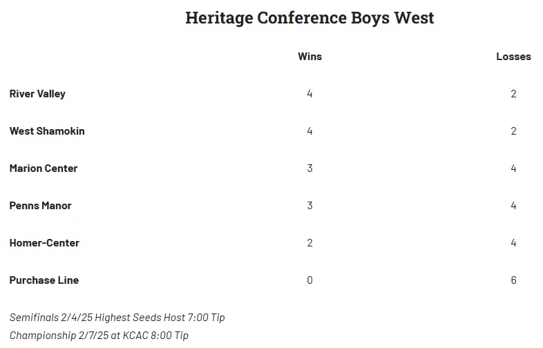 HERITAGE CONFERENCE BASKETBALL STANDINGS