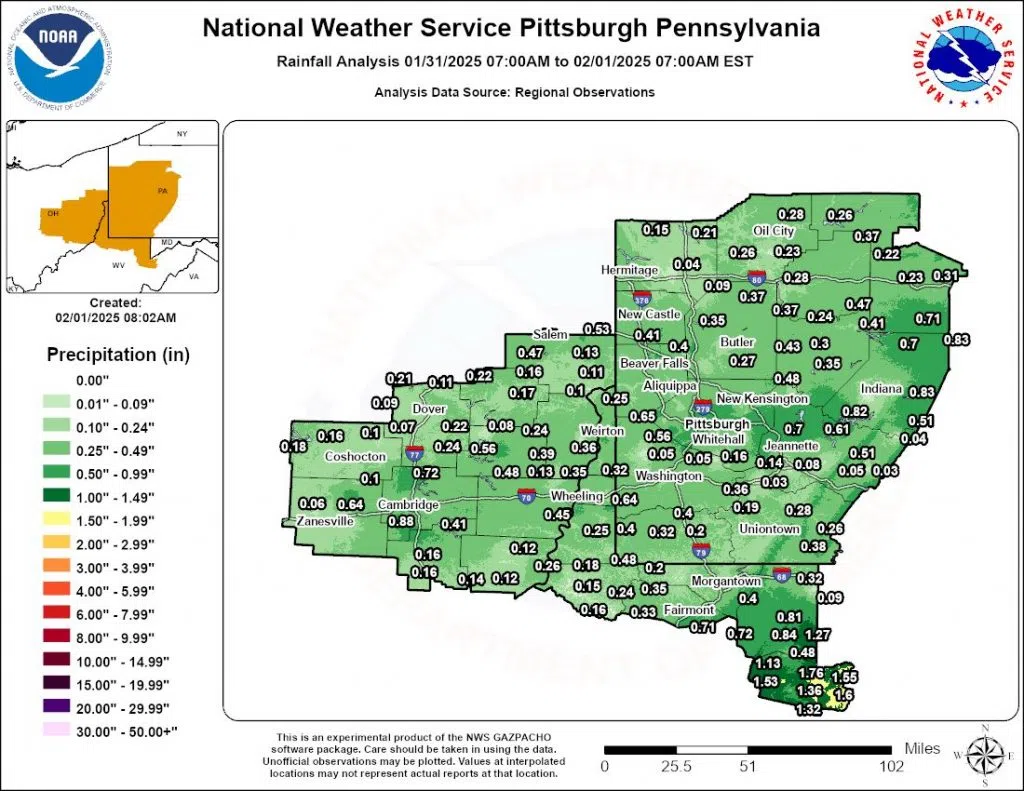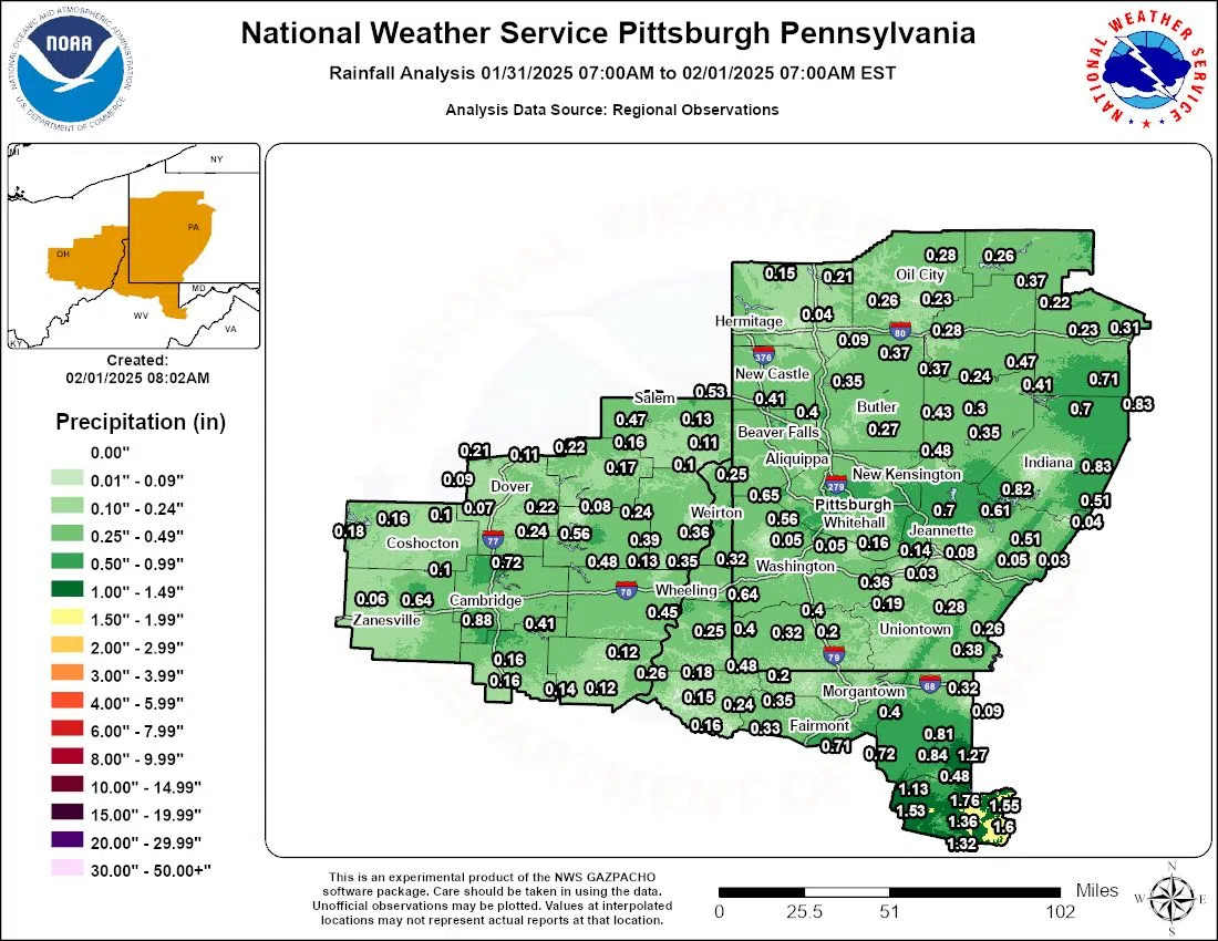 The following shows the rainfall totals for the area from 7 a.m. on Friday to 7 a.m. this morning.