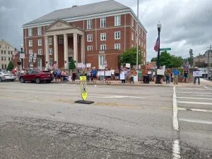 Those taking part in the No Kings event marched up to 8th Street to peacefully protest in front of the courthouse, with crowds on both sides of Philadelphia Street.