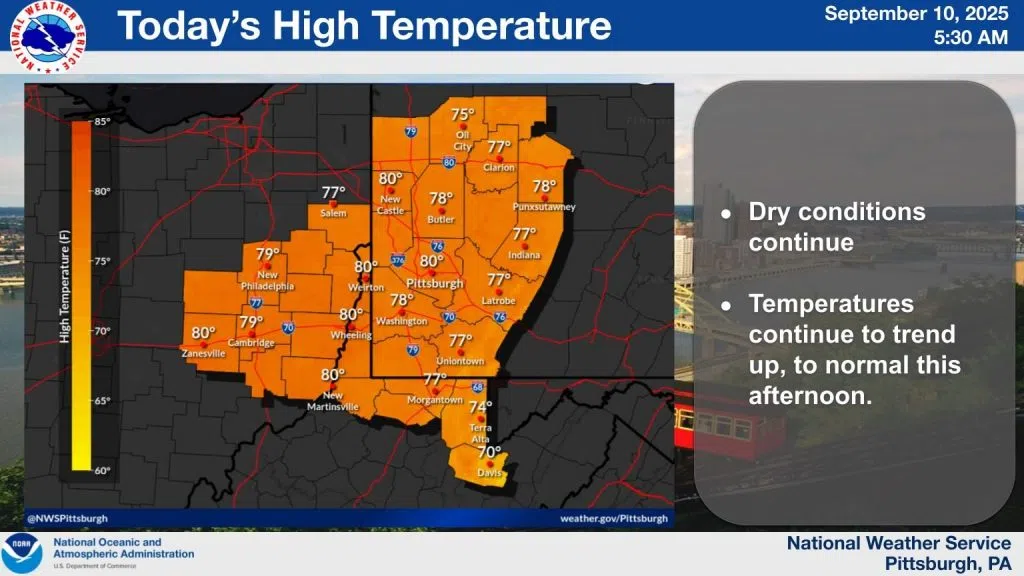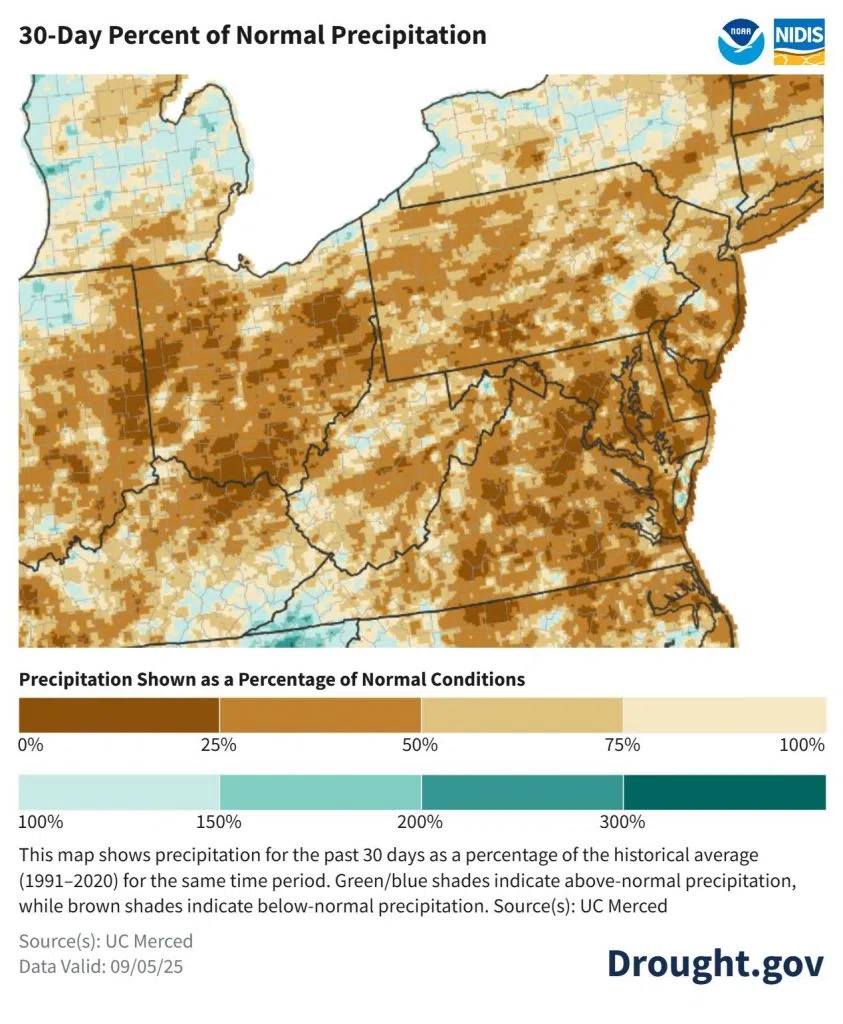 The National Integrated Drought Information System shows that most of Indiana County is in the abnormally dry category, while portions of Banks and Montgomery Townships, and areas of Jefferson and Clearfield County are in moderate drought status. Accuweather meteorologist Jason Caterina said it has been good for outdoor activities and sleeping thanks to large high pressure areas have come through over the last few weeks, but he does not see any rain in the near future that would be significant enough to bring relief.