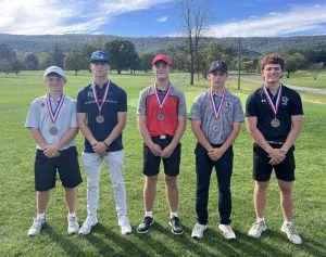 Three golfers from the Heritage Conference will compete in the state AA tournament at Penn State on October 21st and 22nd. After Pynos and Talmadge, Homer-Center’s Brayden Rado finished in a three-way tie for sixth at five over 77. In a one-hole playoff, Bishop Guilfoyle’s Carter Bolan took sixth place and the seventh and final state tournament berth went to Rado over Guilfoyle’s Troy Nachtman.