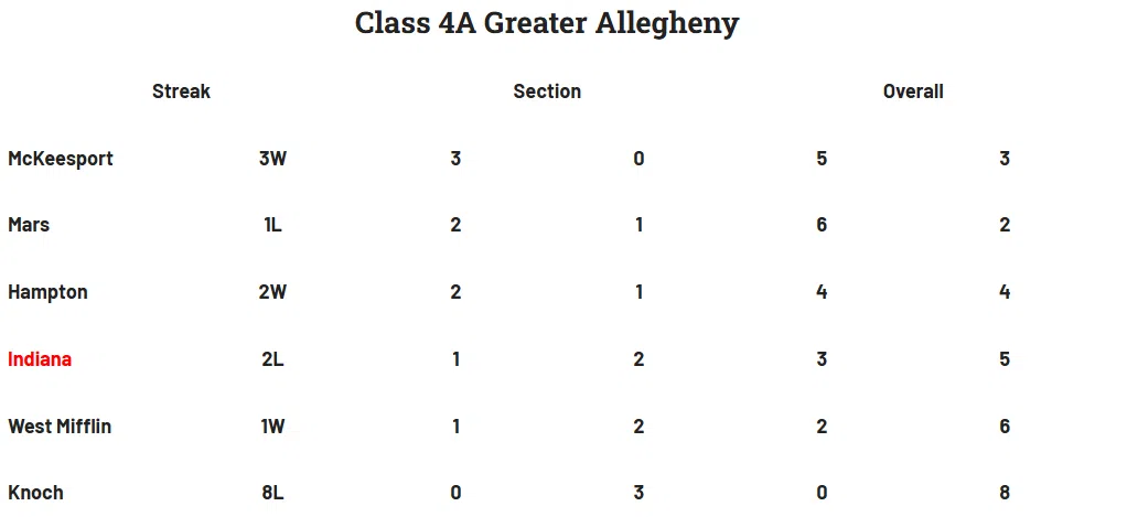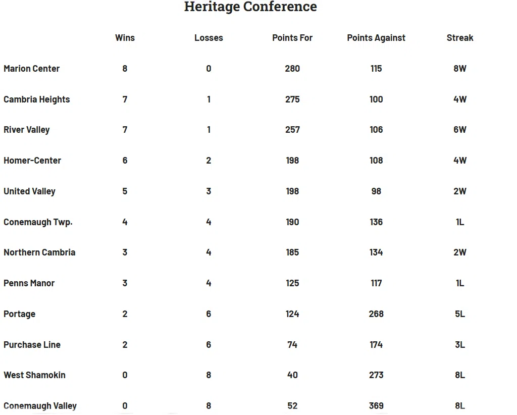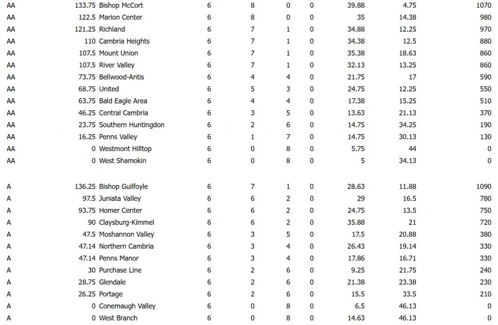 The standings will be updated again after Northern Cambria and Penns Manor play tonight (Saturday, Oct. 11).