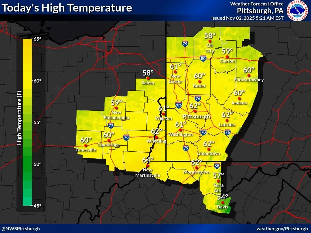 Dry weather with a mix of sun and clouds today. Temperatures climb a few degrees above seasonal normals thanks to light southerly winds.